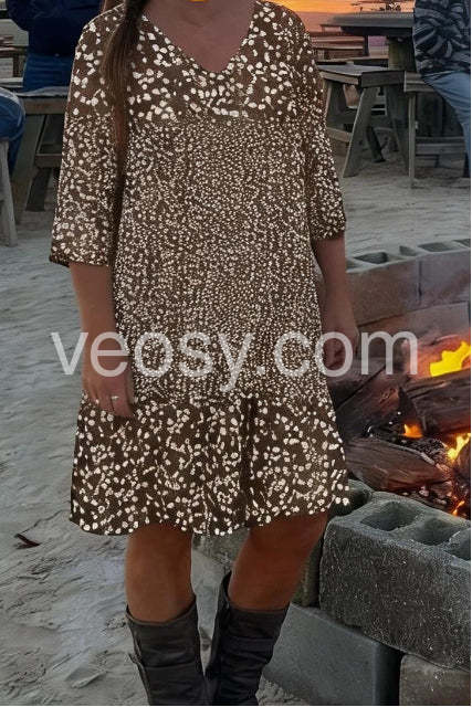 Brown and White Abstract Print Prairie Mini Dress